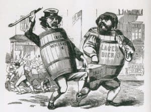 Bias against Irish immigrants already existed long before the mass exodus, yet another result of Catholic – Protestant tensions fueled by generations of previous Anglo-Saxon Protestant immigrants living in the United States. The Irish took labor-intensive, low pay jobs such as digging trenches, laying railroads, blacksmithing and house cleaning. Some even sided with Mexico during the Mexican-American war as a result of mistreatment by the Americans.  These Irish immigrants were deemed traitors by the U.S. government and were subsequently executed. Furthermore, the Roman Catholic Irish population was scapegoated and falsly blamed for straining social services, causing politicians to lose elections (such as Fillmore’s 1844 defeat) and other offenses against the United States . In the most egregious circumstances, their churches were burned, those of Irish descent were murdered in the streets as well as barred from voting and targeted by various nationalist groups. A 2016 article from The Boston Globe describes how the Irish were represented in popular media at the time:
